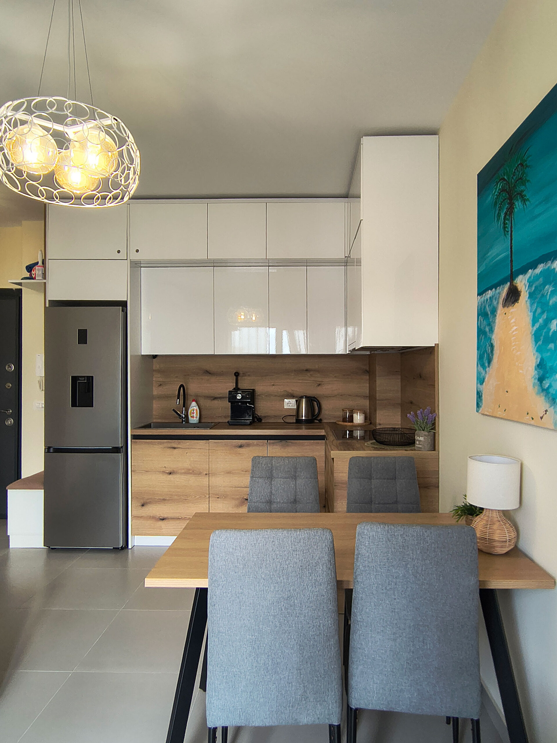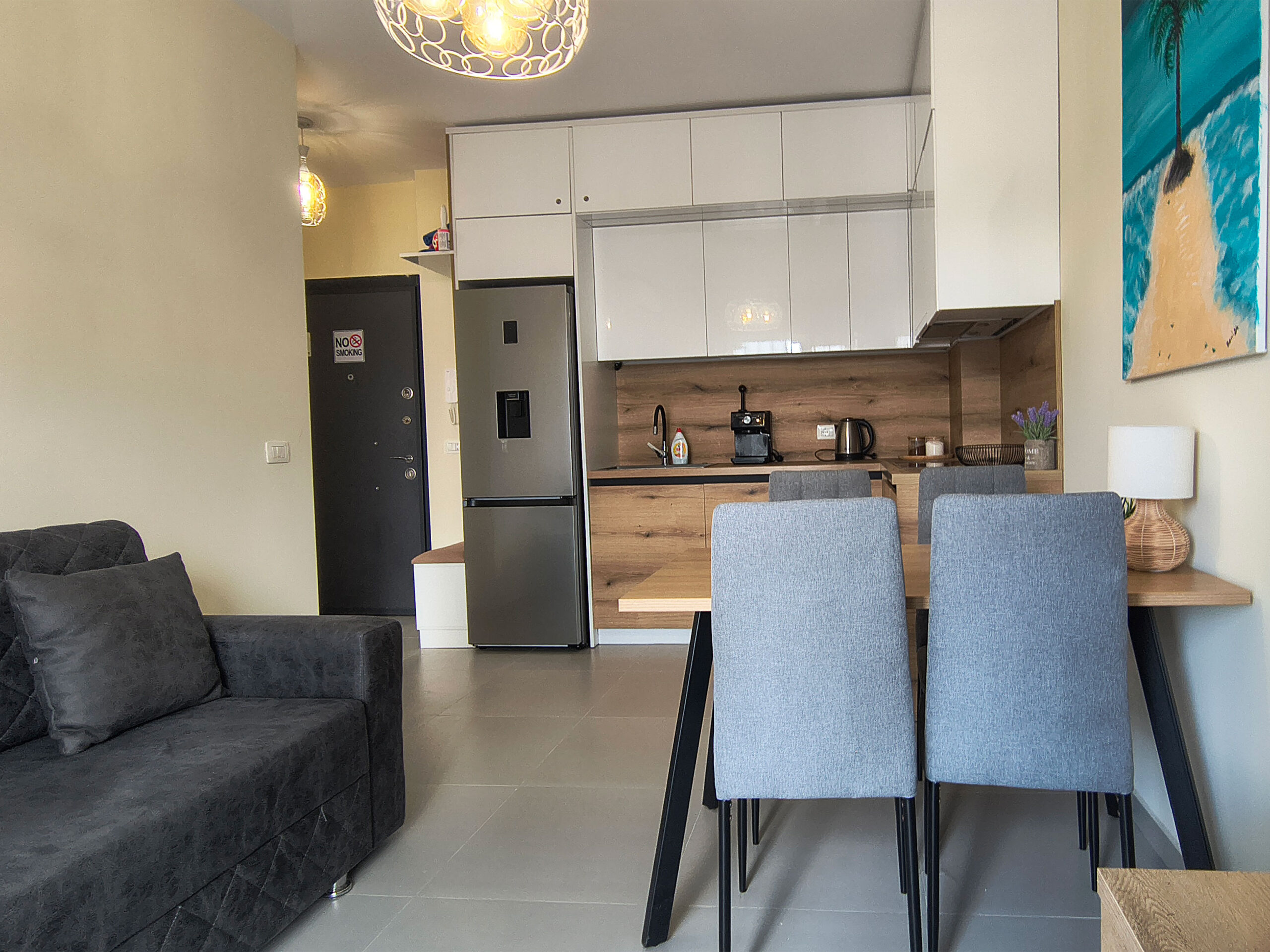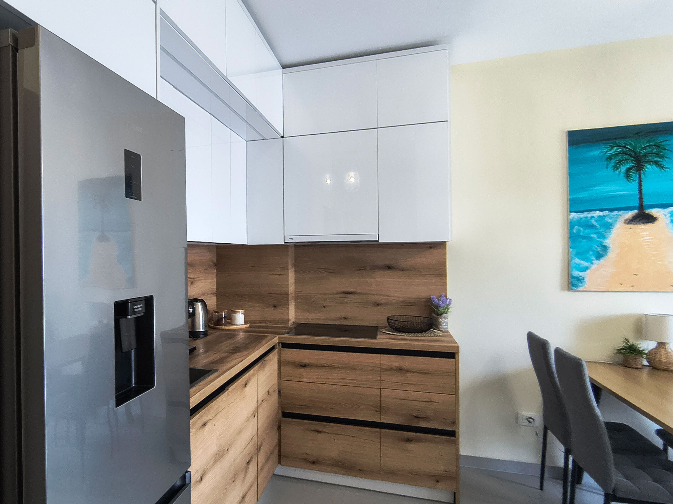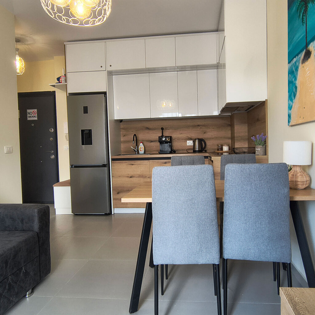 Dysponujemy trzema wyjątkowymi apartamentami w wersjach żółtej, zielonej oraz niebieskiej, z których każdy zachwyca bezpośrednim widokiem na morze. Wszystkie nasze wnętrza są w pełni wyposażone w klimatyzację, lodówkę oraz łazienkę z pralką, co gwarantuje najwyższy komfort i pełną niezależność podczas Twojego wypoczynku.
